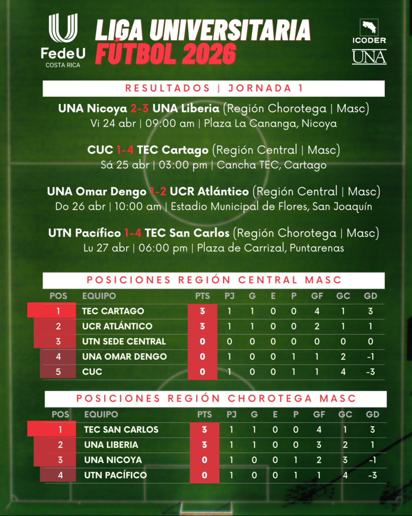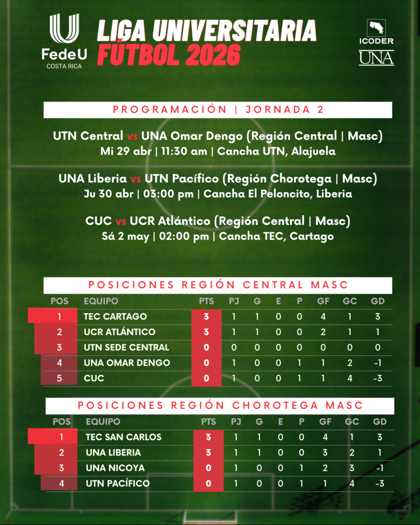 La emoción del deporte llega a distintas regiones del país con la primera edición de la Liga Universitaria de Fútbol FedeU 2026. Equipos de universidades de todo Costa Rica se enfrentarán en una competencia que promete intensidad, talento y mucho espíritu deportivo.